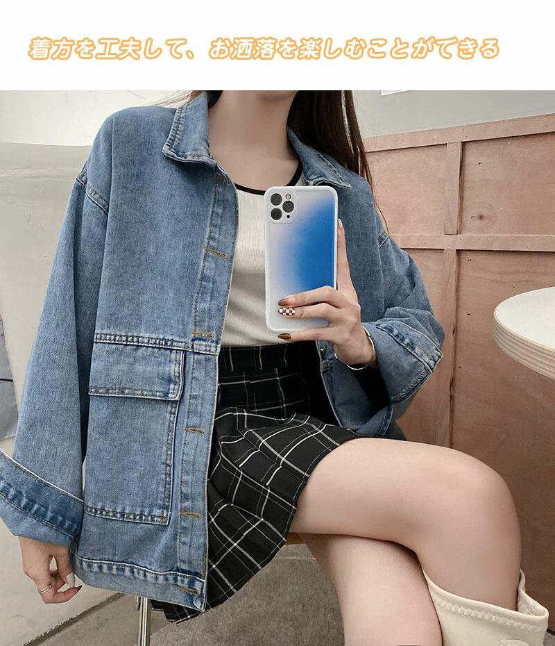 デニムジャケット レディース Gジャン スマート 春服 秋服 長袖 ゆったり コート ポケット Sサイズ Mサイズ Lサイズ デニム ブラック ブルー おしゃれ トップス アウター ジャケット ジージャン 大きいサイズ お出かけ カジュアル 春秋 春服 秋服 かわいい ltg-s2