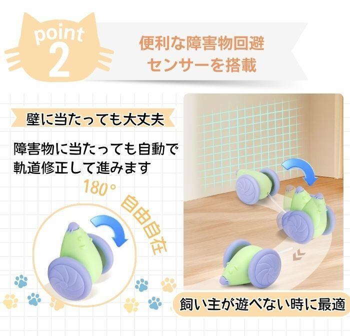 【LEDライト付きのしっぽ】おもちゃ 猫 自動 ストレス解消 電動ネズミ 猫じゃらし USB充電式 電動 猫おもちゃ ねずみ 運動不足 玩具 ウィキッドマウス 簡単操作 猫遊び ネズミ ねこ 一人遊び 電動ねずみ 猫ちゃんへのプレゼント 障害物回避センサー 安全素材 ペットおもちゃ sss-pet4-C3