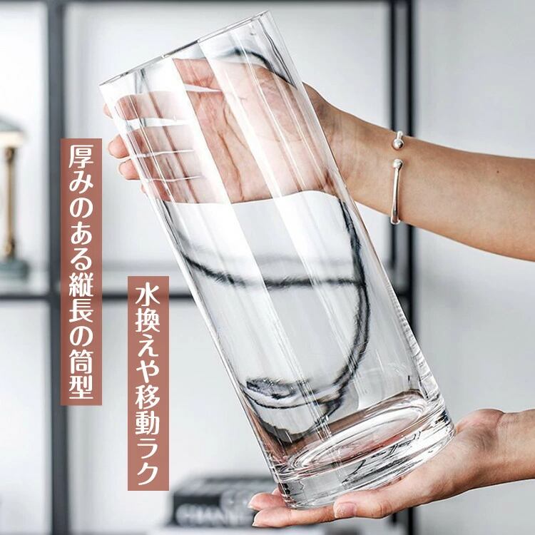 花瓶 ガラス ベース ガラスベース フラワーベース 直径12cm 高さ35cm 透明 大型 円柱 インテリア 花器 花びん flower vase シンプル ガラス製 rkt-c-2204-blhp1235 | SUKIZUKI