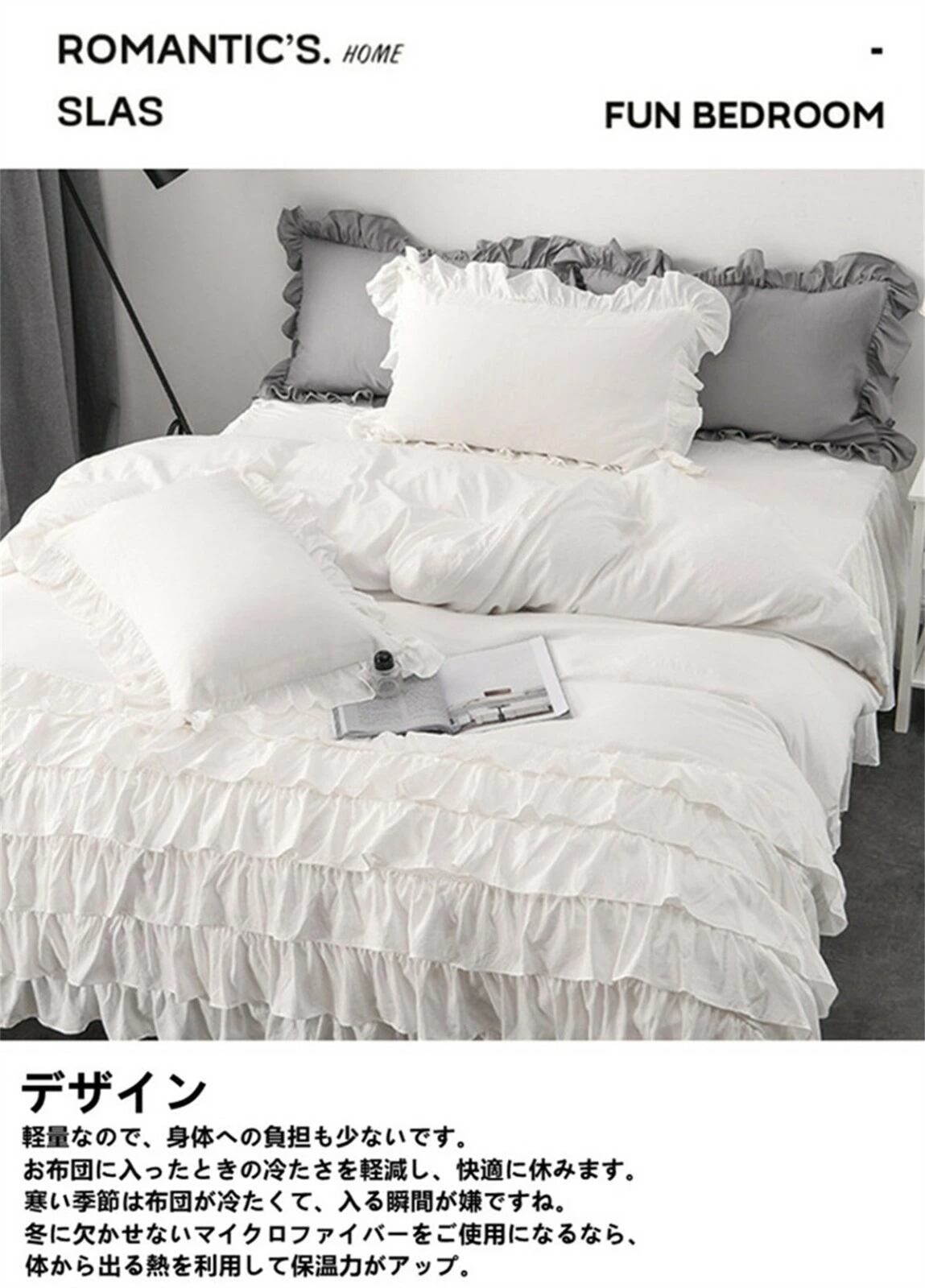 布団カバー フリル シングル 3点セット 掛け布団カバー ベッドスカート 無地 ピーチスキン加工 枕カバー 寝具カバー 四季適用 白 ピンク グレー ブルー 青 S rkt-y-2112-sjt | SUKIZUKI