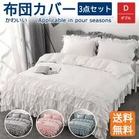 布団カバー フリル ダブル 3点セット 掛け布団カバー ベッドスカート 無地 ピーチスキン加工 枕カバー 寝具カバー 四季適用 白 ピンク グレー ブルー 青 D rkt-y-2112-sjt-d