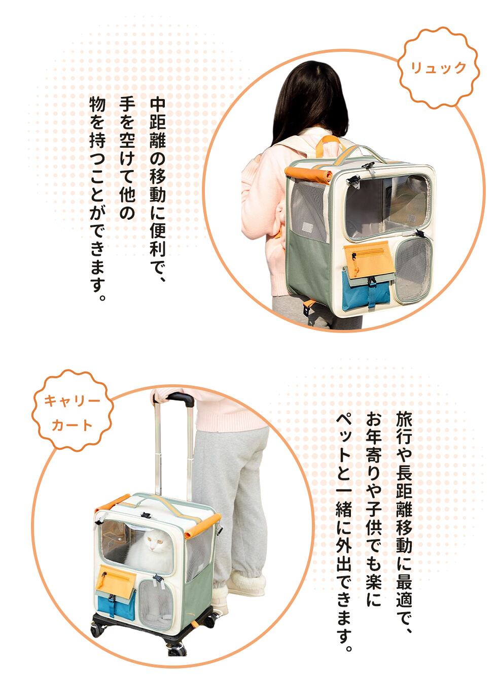 ペットキャリー リュック キャリーバッグ キャリーカート キャスター付き 3WAY 猫 2匹 折りたたみ 軽量 大容量 コンパクト 犬 小型犬 犬猫兼用 お出かけ 旅行 通院 防災 災害 避難 ペット用品 大きめ カート分離 台車付き クレート 持ち運び ドライブ wsy-pet-001
