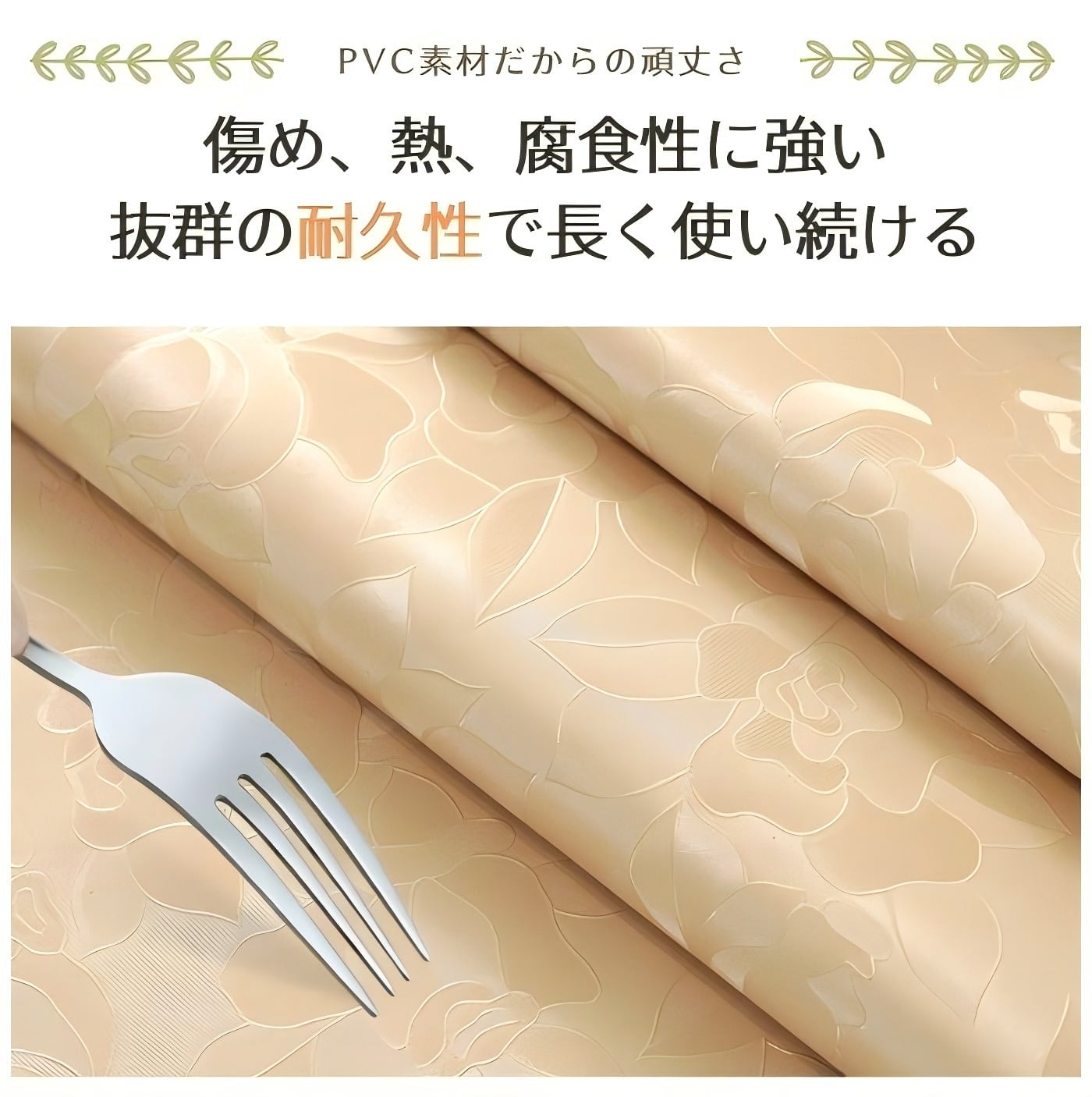 ※ 良質ポリ塩化ビニール素材:無毒無味PVC素材を採用し、PVC特有の化学臭いが最大限に薄くなり、こどもやお年寄りが安心にご利用いただけます。防水、防油、汚れ防止、浸透しにくい多機能テーブルクロスです。