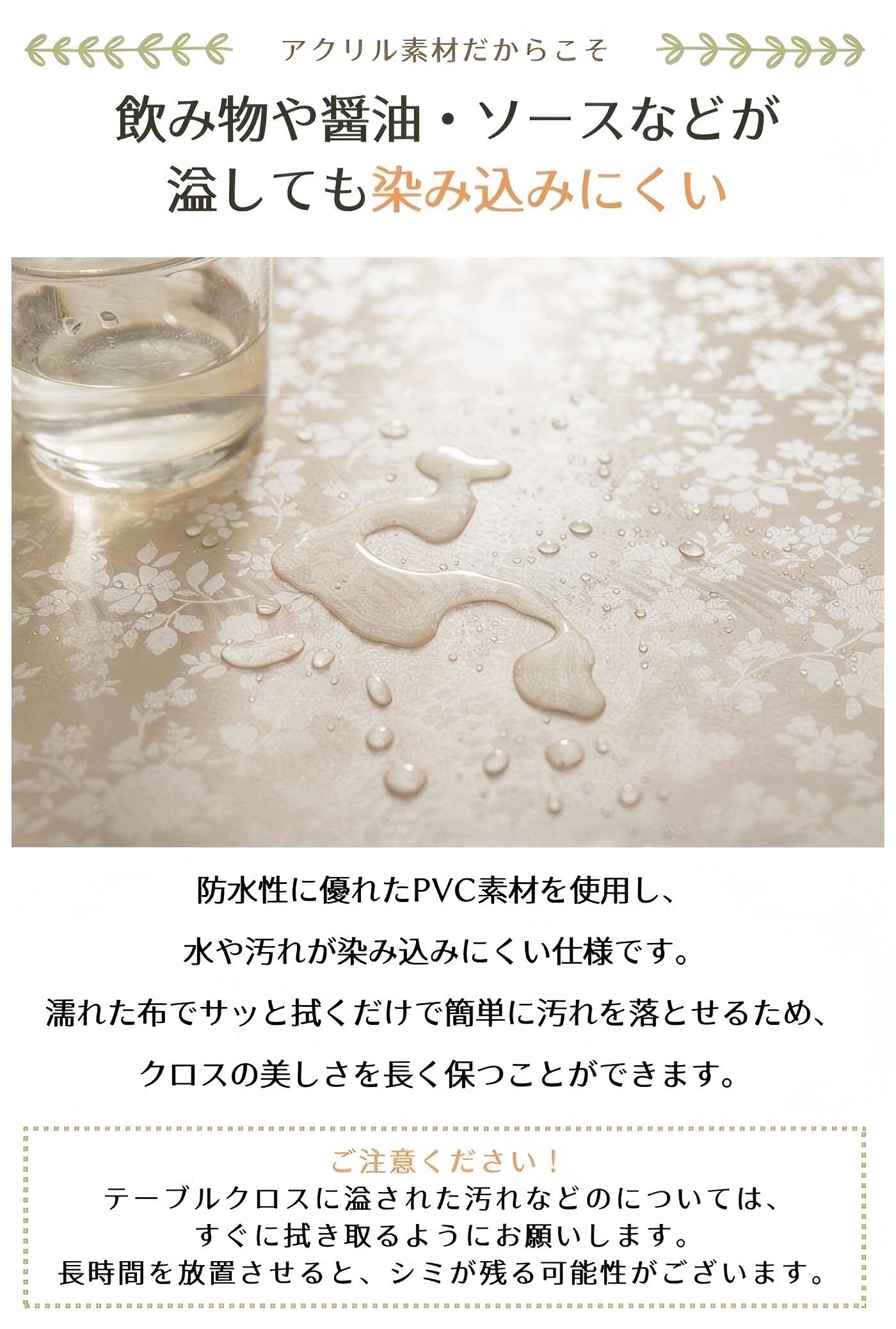 ※ お手入れ簡単:防水防油防カビの機能付き、洗濯の必要がありません。汚れたら、雑巾で拭き取るだけで、お手入れ簡単です。いつでも食卓の清潔に保つことができます。