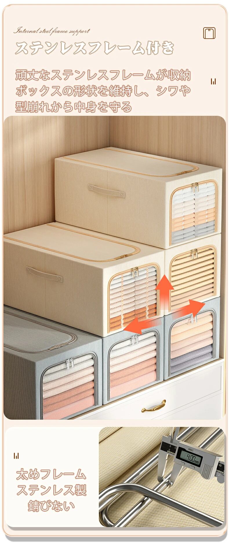 【2個セット】 収納ボックス 収納ケース おしゃれ ステンレスフレーム 折りたたみ 衣装ケース クローゼット 押入れ収納 衣類収納 引き出し 積み重ね ボックス 押入れ ケース 北欧 押し入れ収納 新生活 衣類ケース 押し入れ コンパクト 前開き 折り畳み 大型 収納用品 mgw-sb-01 | SUKIZUKI