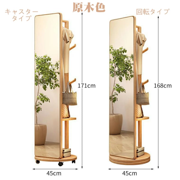 ミラー 全身鏡 姿見 鏡 長方形 ハンガーラック 回転ミラー ハンガー ミラー付き 回転ハンガー 全身 木製 おしゃれ スダンドミラー 回転式 天然木 wyf-mirror-03 | SUKIZUKI