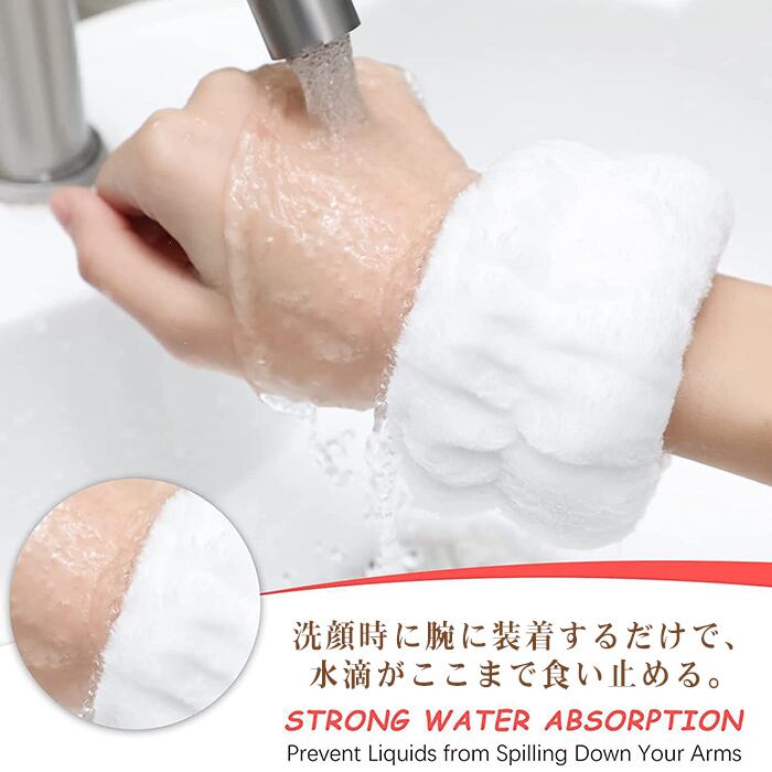 リストバンド 吸水 洗顔 もこもこ 袖濡れ防止 服濡れ防止 吸水タオル