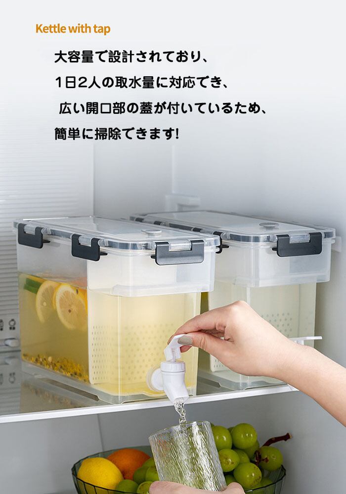食品級プレミアム製 冷水筒 蛇口付き 冷水筒 横置き大容量 冷蔵庫ポット 水筒 冷水ポット 冷蔵庫 ジャグ ポット