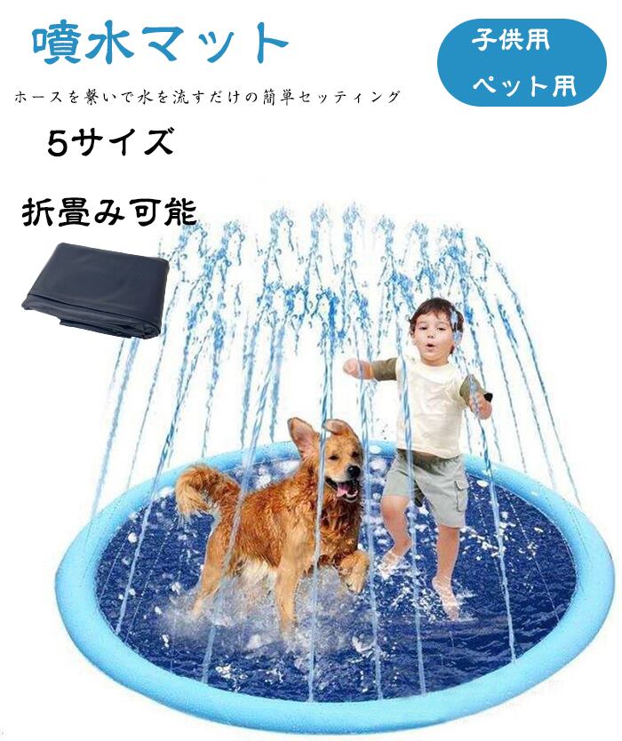 噴水マット 噴水プール 水遊び おもちゃ 浮き輪 浮き輪マット 子供用 犬用 家庭用 庭 芝生遊び 屋外用パッドプール 直径220cm