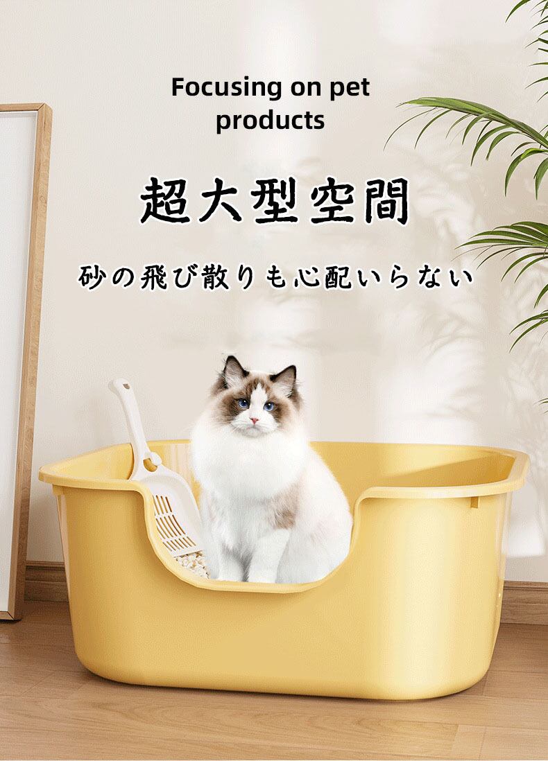 超大型猫用トイレ 飛散防止 一体成形 猫トイレ 超大型猫用トイレ 猫 トイレ オープンタイプ 大きい猫 多猫 猫用トイレ本体 専用スコップ付き 滑り止め 簡単掃除 便利 ltg-m6 | SUKIZUKI