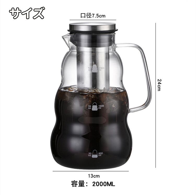 水だしコーヒーポット2000ml 960ml 冷水筒 冷水ポット アイスコーヒーポット 水出しコーヒー 水出しアイスコーヒー ポット 麦茶ポット rkt-c-2208-kflch2000 | SUKIZUKI