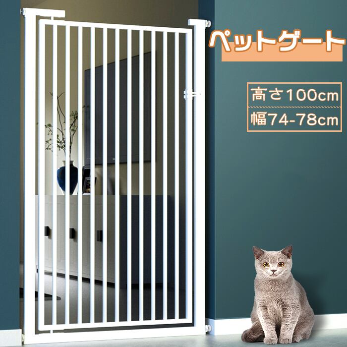 ペットゲート ゲート 柵 ペット用 ペット フェンス 突っ張り 猫 脱走防止 ドア付き 突っ張り スチールゲート ハイタイプ ペットフェンス ワイド 犬 柵 安全柵 脱走防止 飛び出し防止 スチール製 ペットガード 幅74 高さ100cm hyf-pet-10 | SUKIZUKI