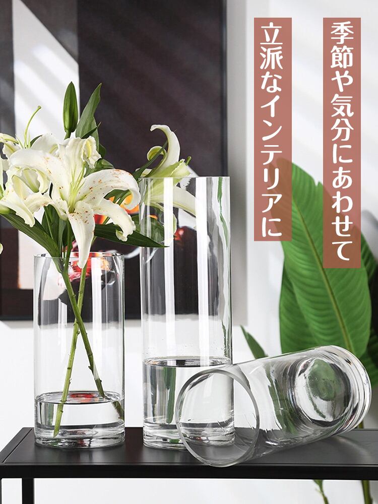 花瓶 ガラス ベース ガラスベース フラワーベース 直径15cm 高さ25cm 透明 円柱 インテリア flower vase シンプル ガラス製 rkt-c-2204-blhp1525