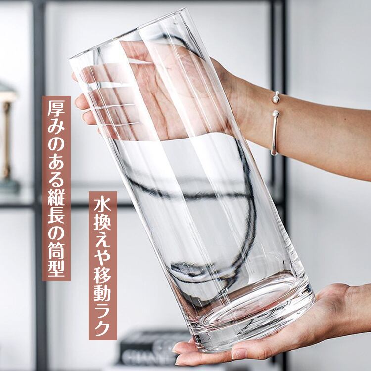 花瓶 ガラス ベース ガラスベース フラワーベース 直径15cm 高さ25cm 透明 円柱 インテリア flower vase シンプル ガラス製 rkt-c-2204-blhp1525 | SUKIZUKI